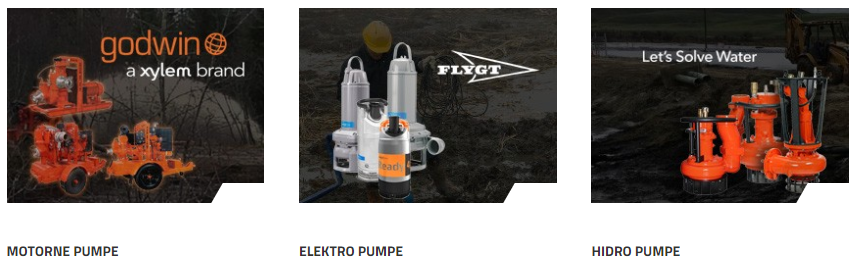 - građevinskog segmenta pumpi Xylem grupacije u koje spadaju najveći svetski brendovi „Flygt“ i „Godwin“,