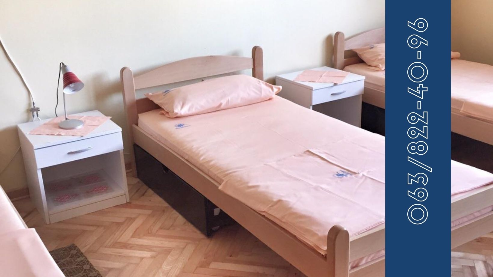 Sobe su trokrevetne, dvokrevetne i jednokrevetne. Svaka soba ima izlaz na balkon ili veliku terasu sa koje se pruža prelep pogled na Dunav. U okviru svake sobe postoji televizor, noćni stočić, krevet i ormar za svakog korisnika posebno.