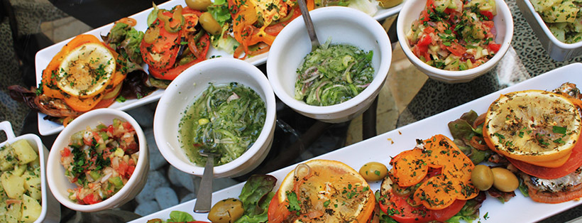 Raznovrsne salate,korpice,kanapei,slani rolati i slane torte napravljene od kvalitetnih i svežih sastojaka.