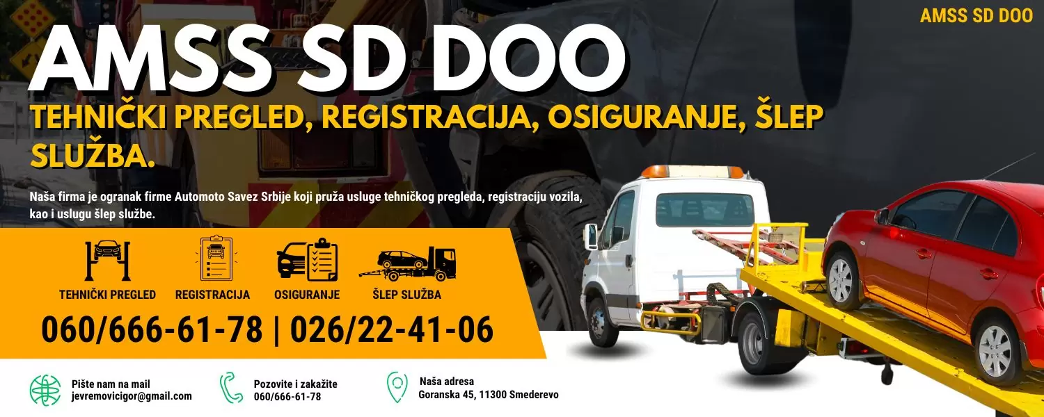 AMSS SD Smederevo – Tehnički pregled, registracija, osiguranje, šlep služba.